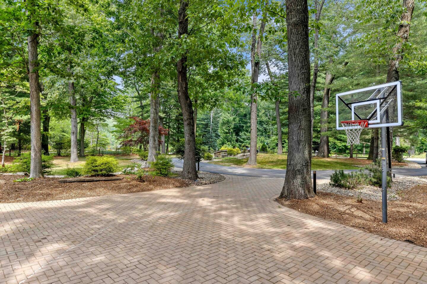 A circular drive + full driveway leading to a 2 car garage provide parking for as many as needed. One garage space is available for guests to park, as the rest of the space is stocked with seasonal toys for your use -- everything from 4 adult bikes, 2 children's bikes, a Burley double bike trailer, to beach chairs, an umbrella, a cooler and sand toys are provided. Take up an evening game of hoops on the basketball court out front. Sneak in a game of bocce in the backyard while the Chef of the group cooks dinner on the 48" built in grill while the kids play in the brand new heated pool. Good thing you've stopped at the Farm Stand on the way home, as there is a 48" Kitchen Aid Range with griddle, Gagenaeu steamer, pot filler, beverage cooler, 3 sinks for prep and 2 dishwashers to make chores a little less ... choreful on vacation. That's in addition to the large, covered outdoor kitchen with range, dishwasher, ice maker, prep sink and bountiful counter space. There is plenty to entertain the young and young at heart in the home, including a retro arcade, dart board, 6 TV's with ROKU in guest mode so you can log onto your own subscriptions and not have to remember to log out when you reluctantly have to leave. Please note, Guest will be required to review and sign a vacation rental agreement with the Host prior to receiving access instructions.
